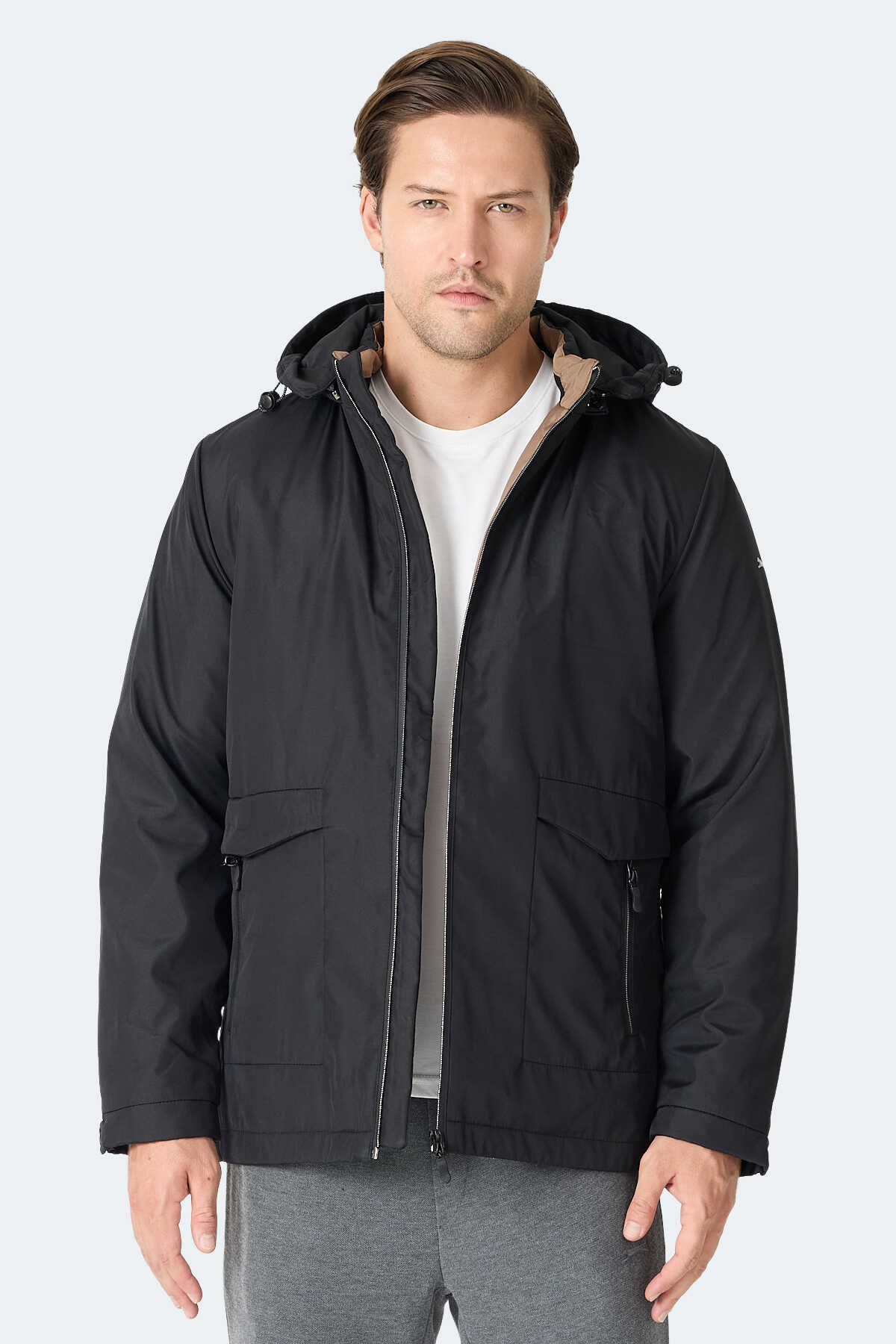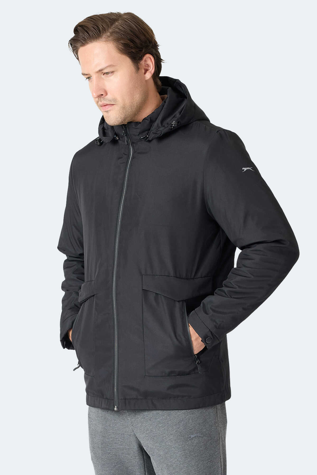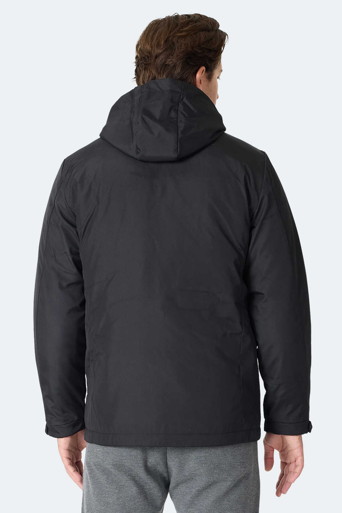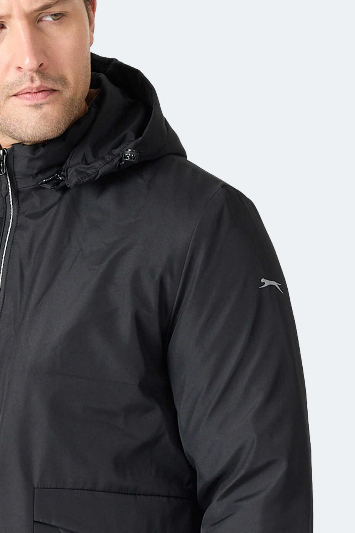 Slazenger GRAVEL Erkek Kapüşonlu Siyah Mont & Kaban