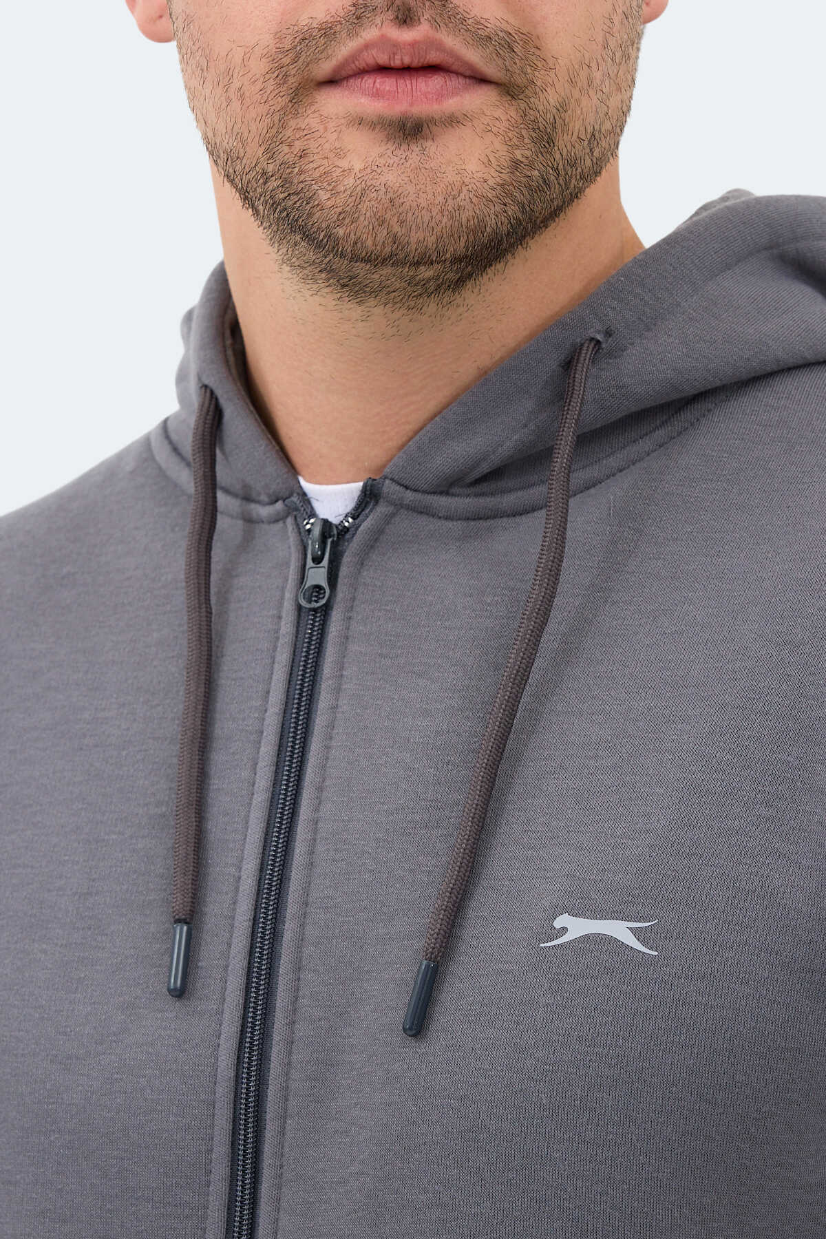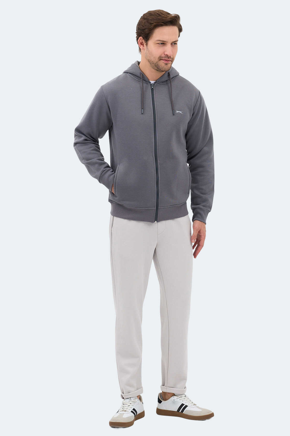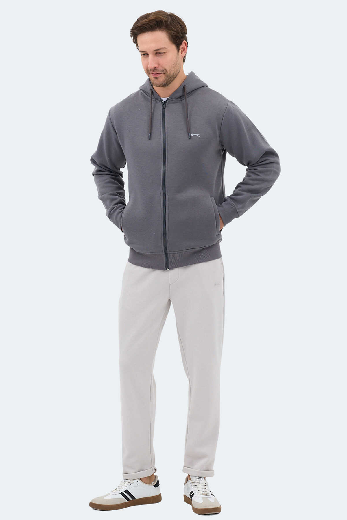 Slazenger MAJESTIC I Erkek Fermuarlı Kapüşonlu Cepli Gri Sweatshırt