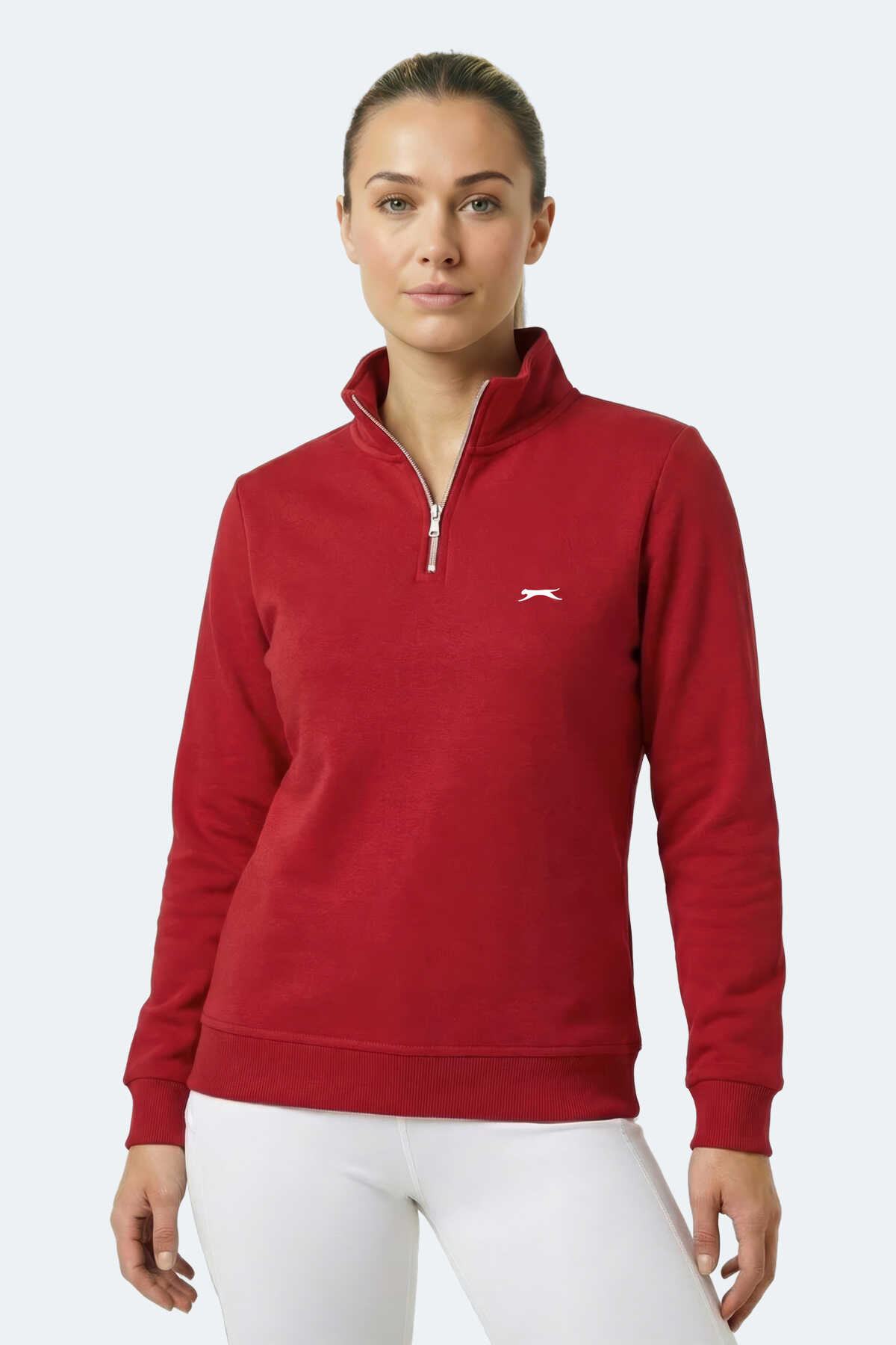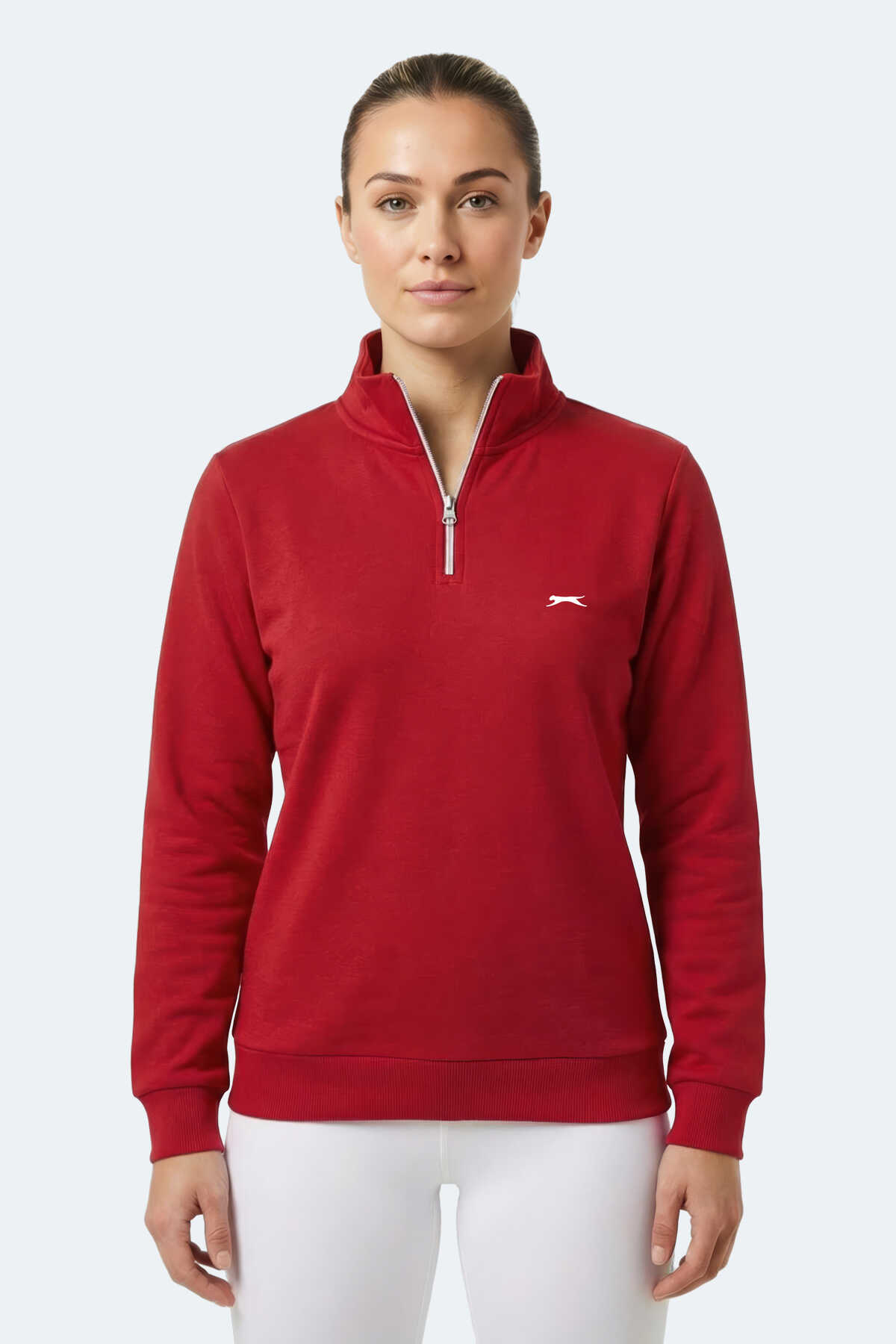 Slazenger MAXIS I Kadın Dik Yaka Fermuarlı Kırmızı Sweatshırt