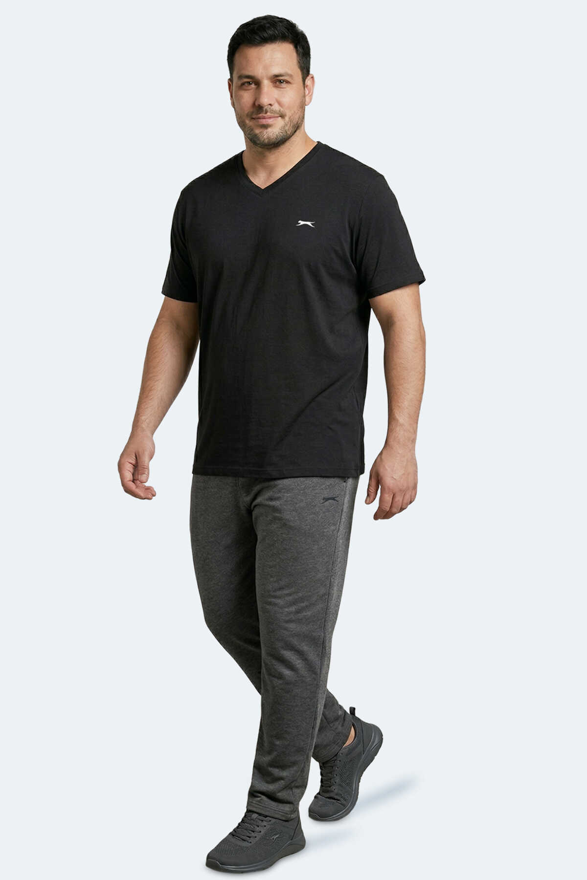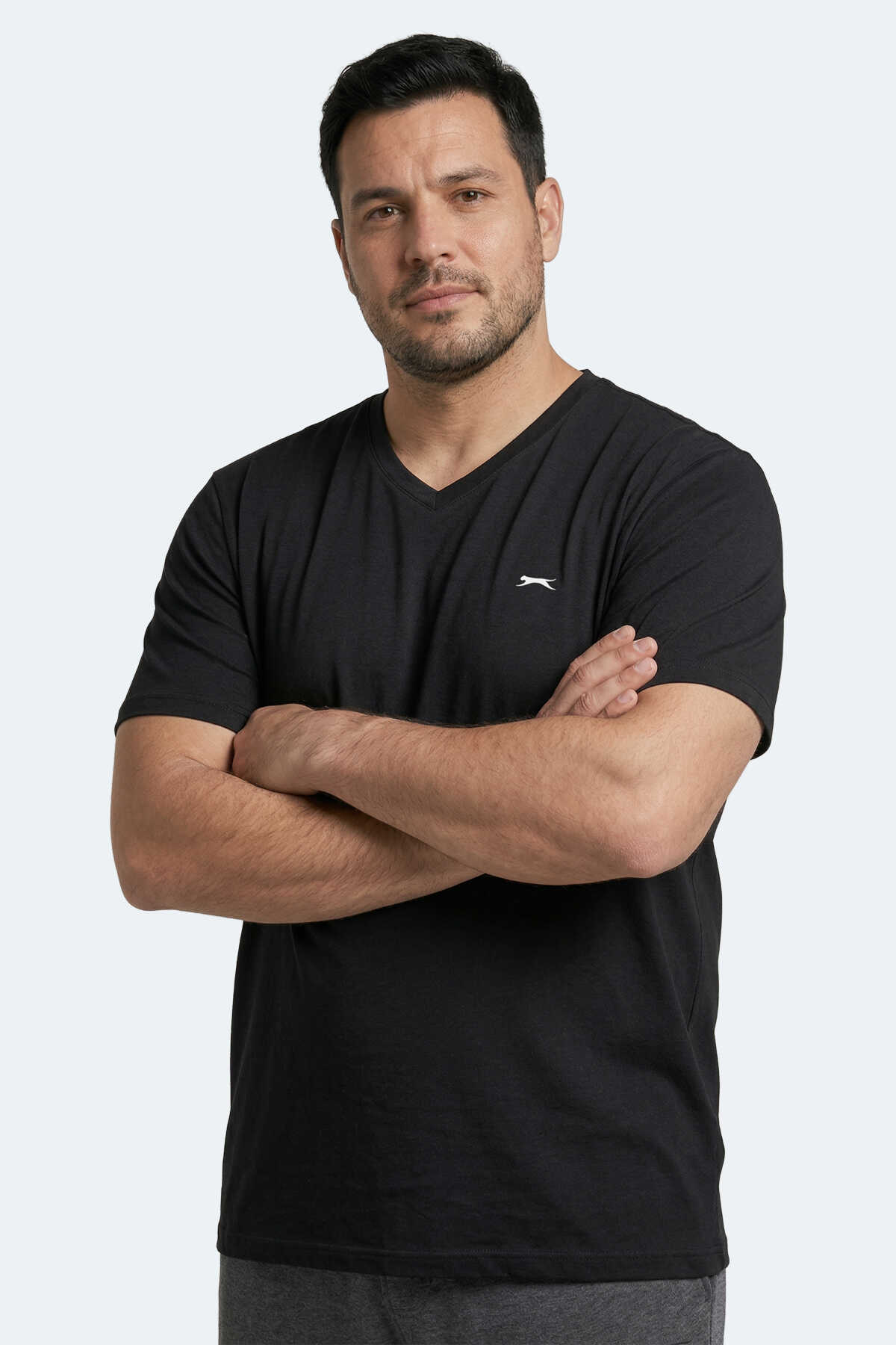 Slazenger SARGON KTN Büyük Beden Erkek V Yaka Siyah Tişört