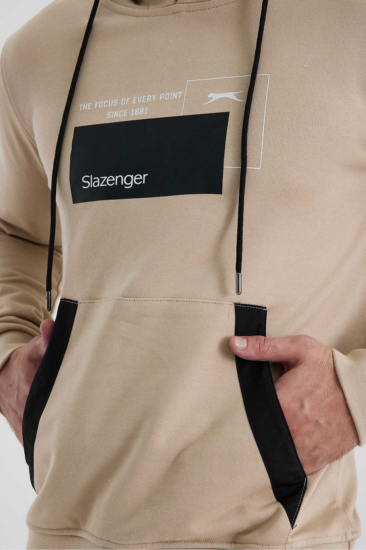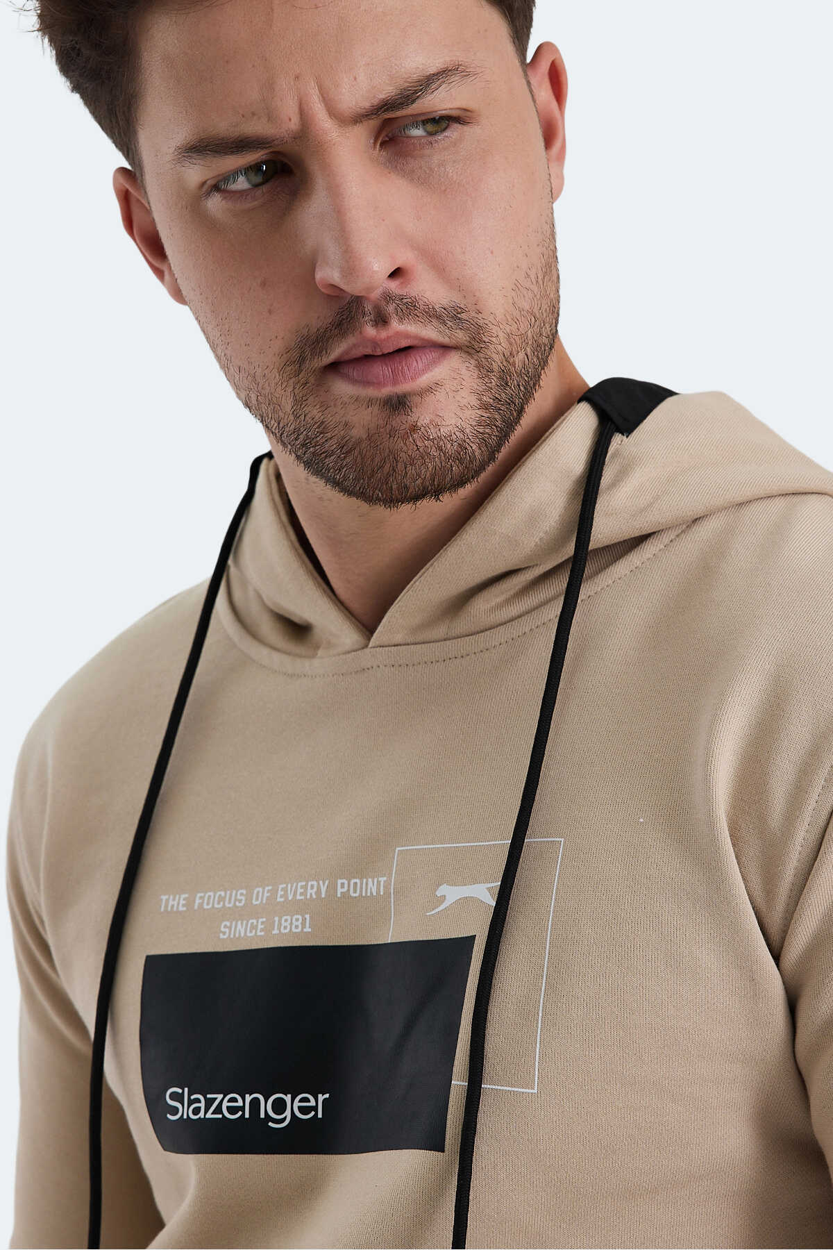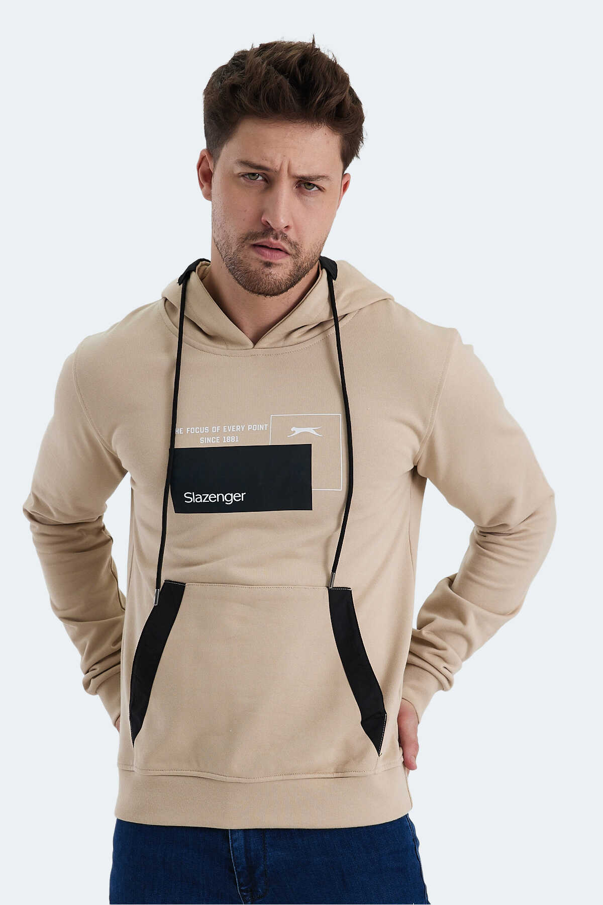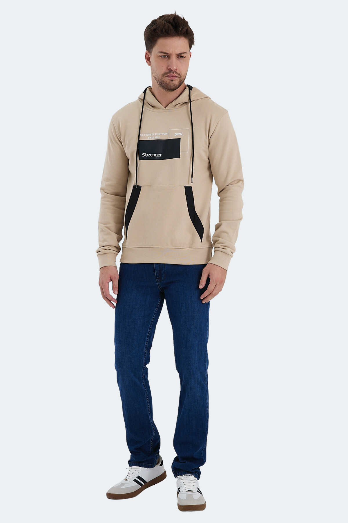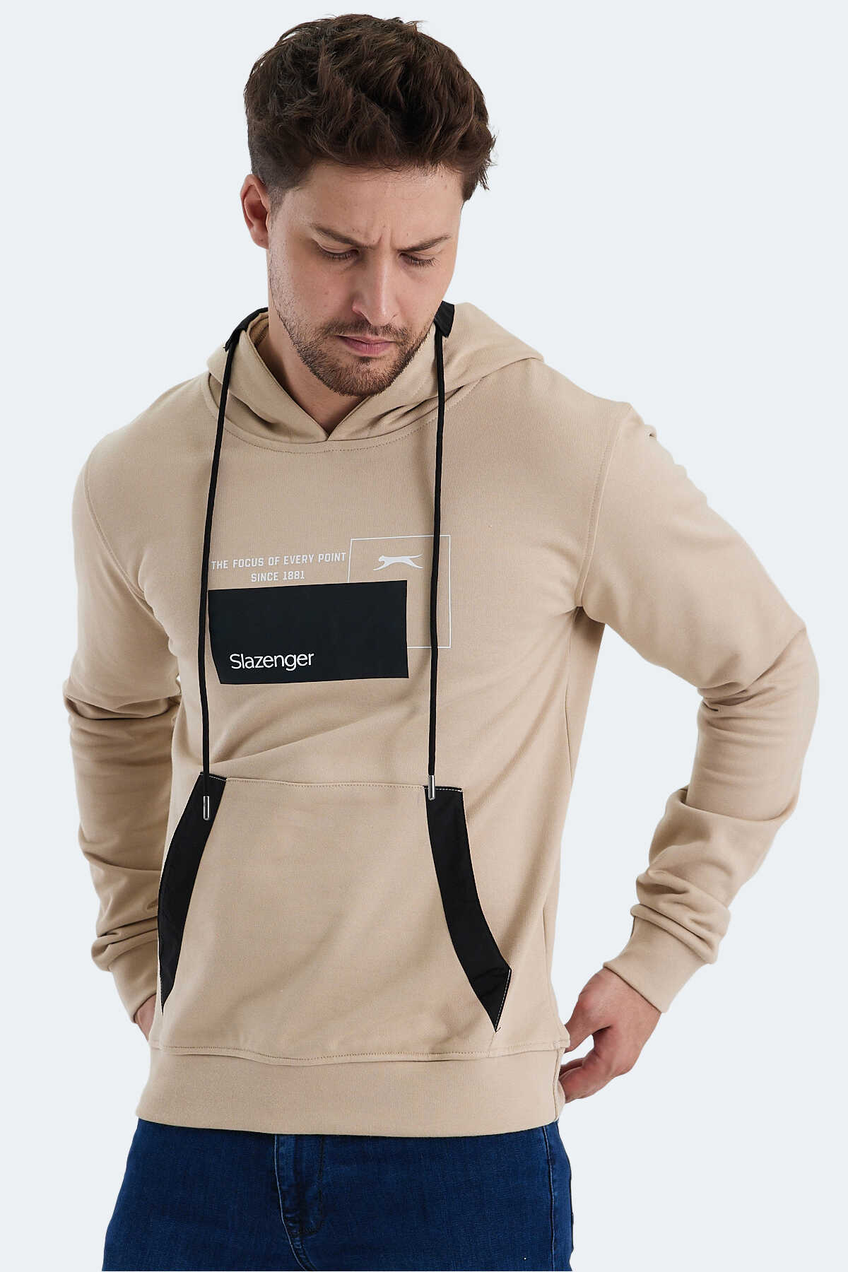 Slazenger VANDA Erkek Kanguru Cepli Kapüşonlu Bej Sweatshırt
