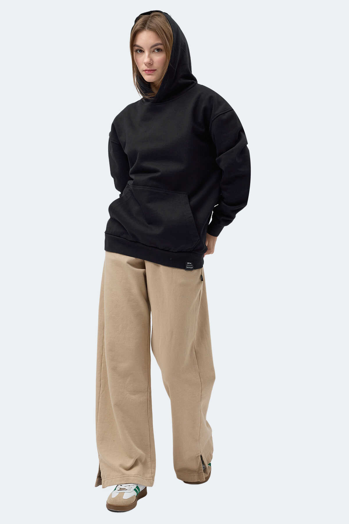 Slazenger VIOLENCE Unisex Kapüşonlu Cepli Oversıze Siyah Sweatshırt
